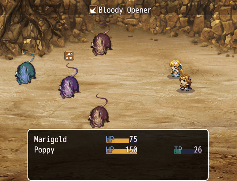 | Embolden | Severely increase Marigold’s attack for the current turn. Costs 40TP. |